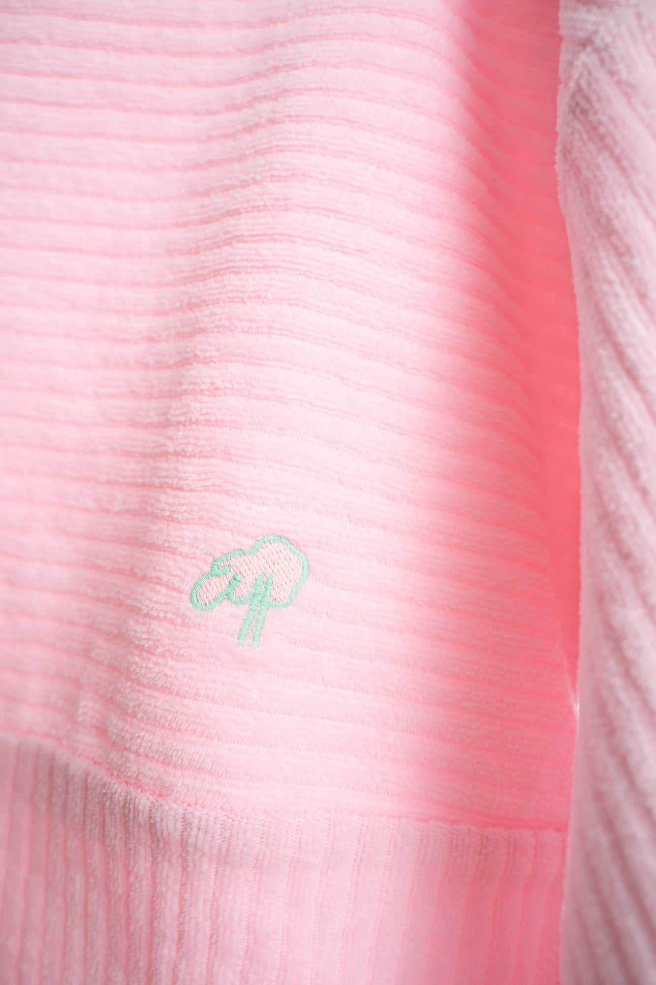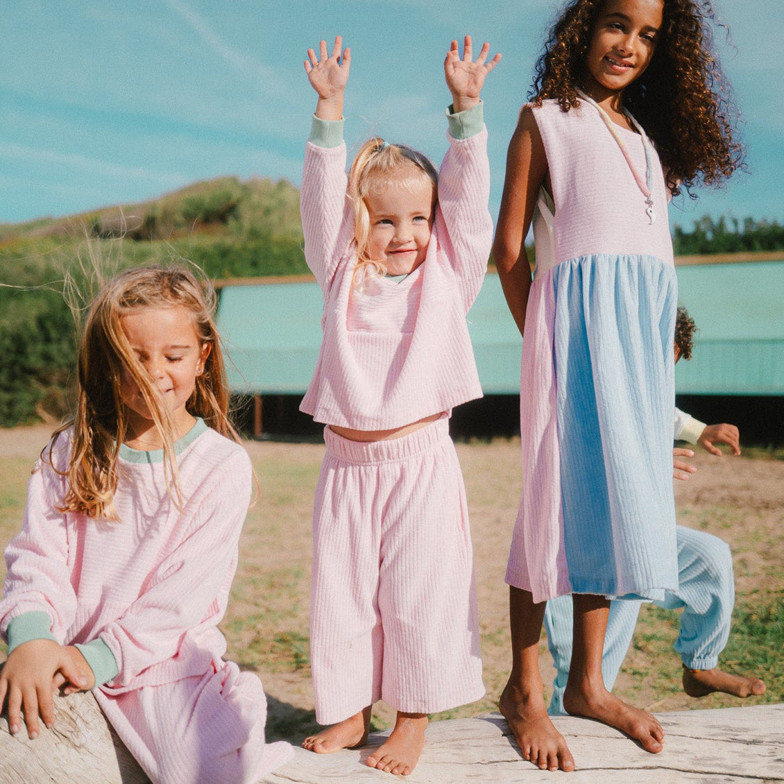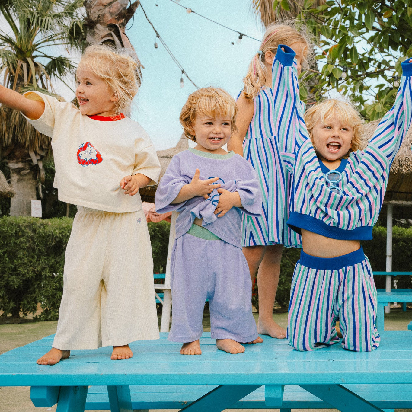 Gefertigt aus unserem superweichen, strukturierten Terry-Material aus 100% GOTS Bio-Baumwolle, das sich auf der Haut anfühlt wie eine leichte, flauschige Umarmung. Der Stoff ist ethisch produziert und atmungsaktiv – cool als Streetwear, comfy for playtime.